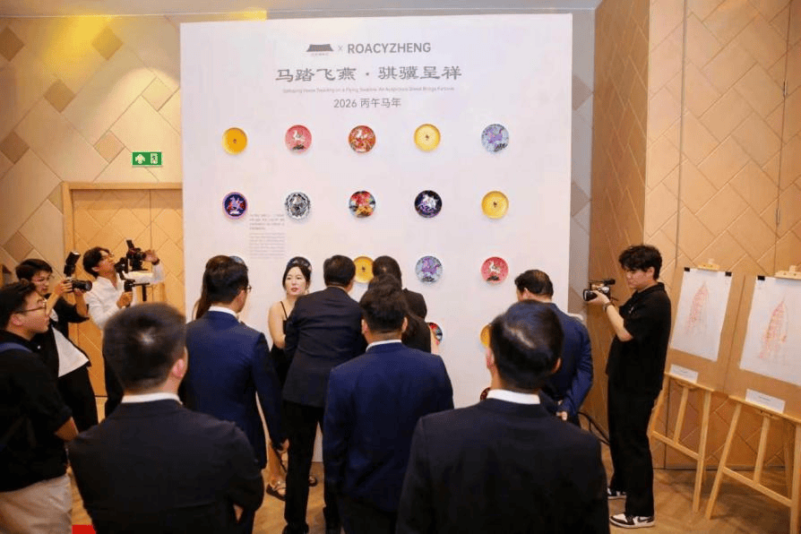 纹样博物馆还携手青年先锋艺术家郑冲(RoacyZheng),联名打造年度文化力作《丙午盛世八骏图》2026马年纹样系列艺术品;此外,刚刚斩获2025年工美行业最高荣誉百鹤杯的又及的“飞龙在天”花丝镶嵌作品、朱炳仁·铜和汝瓷的非遗代表汝山明等展品悉数亮相。