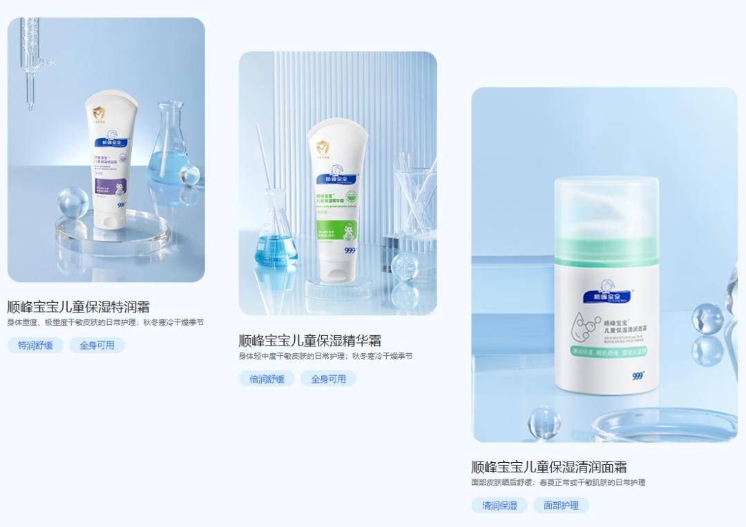 顺峰宝宝。公开资料显示,顺峰宝宝是华润三九医药股份有限公司旗下子公司所推品牌,专注于儿童皮肤屏障自舒缓。从整体业绩看,顺峰宝宝并没有像其余三大品牌那般突出,甚至并未进入抖音婴童护理TOP10,但放到细分品类上,品牌优势便显著凸显。